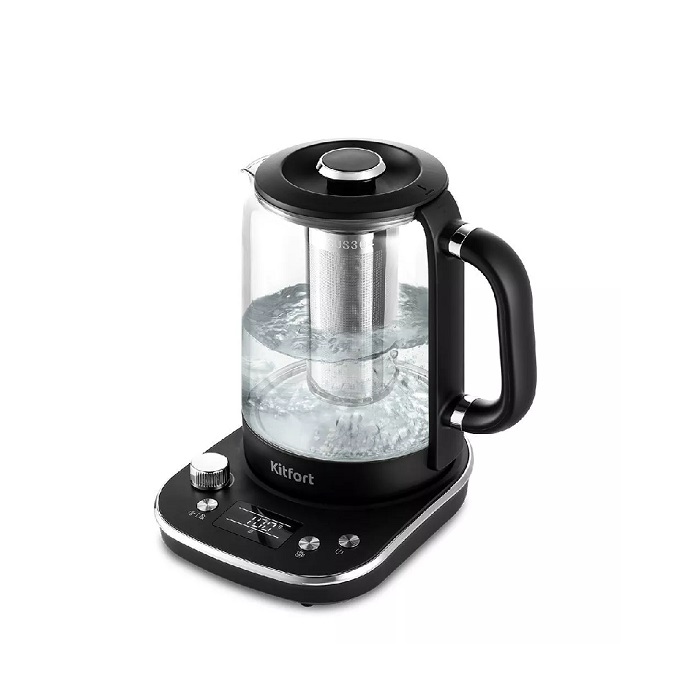 Электрический чайник с электронным терморегулятором Kitfort КТ-6157 может не только вскипятить воду, но и нагреть ее до температур: 38–100 °С с шагом 1 °С, что очень удобно при заваривании различных сортов чая и для приготовления детского питания