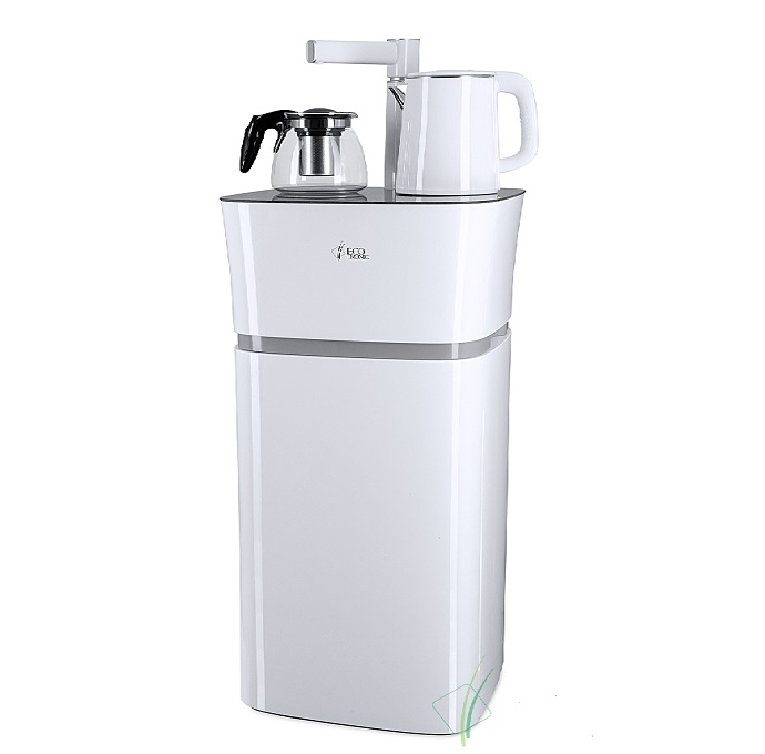 ТТиабар Ecotronic TB11-LE white – это напольный кулер с чайным столиком. Нижняя загрузка бутыли, электронное охлаждение. Нагрев воды в чайнике до 100°С. Два чайника – для кипячения (изотермический) и заварочный.