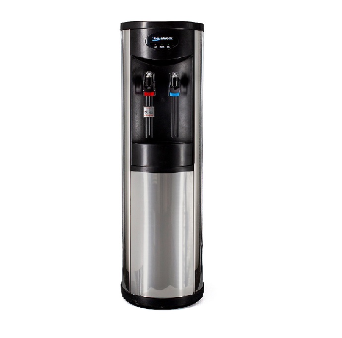 Высокий напольный кулер для воды Aqua Work 1C с нагревом и компрессорным охлаждением в стальном корпусе, с зеркальным отражением.